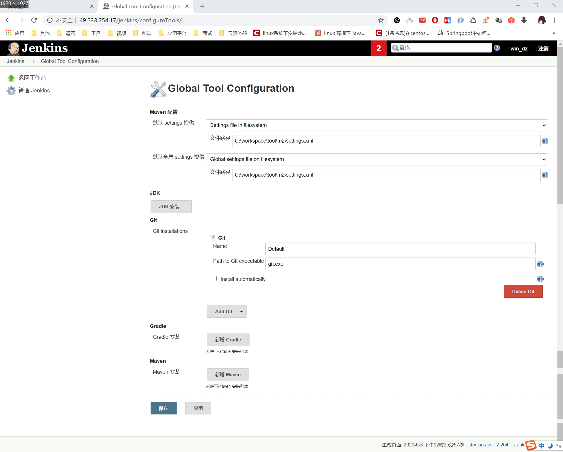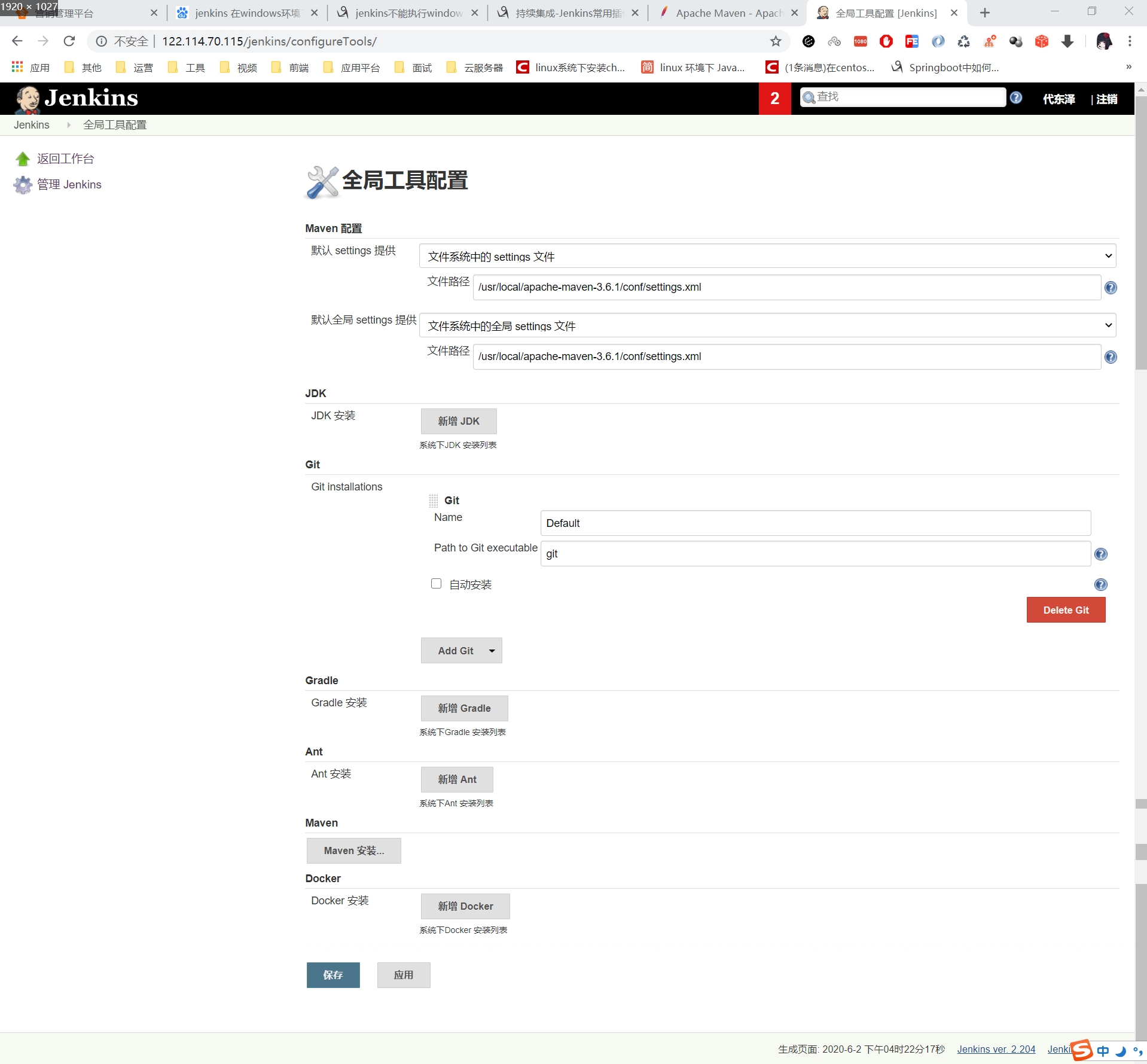 1、Linux系统直接部署jenkins.war 此种情况,不需要配置jdk(宿主主机已经提前部署好java环境才能运行war包) 2、docker部署jenkins镜像 a. 手动配置 此种情况需要宿主主机准备Java配置环境,启动容器时挂载宿主主机Jdk目录,在新增JDK