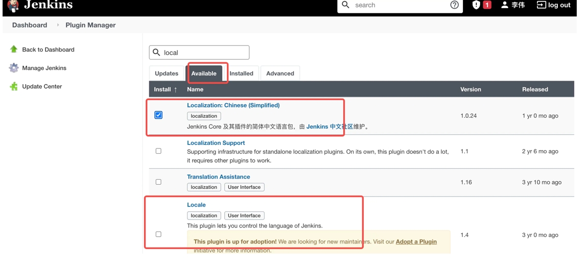 安装汉化插件 Locale plugin、Localization: Chinese (Simplified)