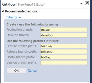 当你用Git-flow初始化后,基本上你只需要点击git flow菜单选择start feature, release或者hotfix, 做完后再次选择git flow菜单,点击Done Action. 我勒个去,我实在想不到还有比这更简单的了。